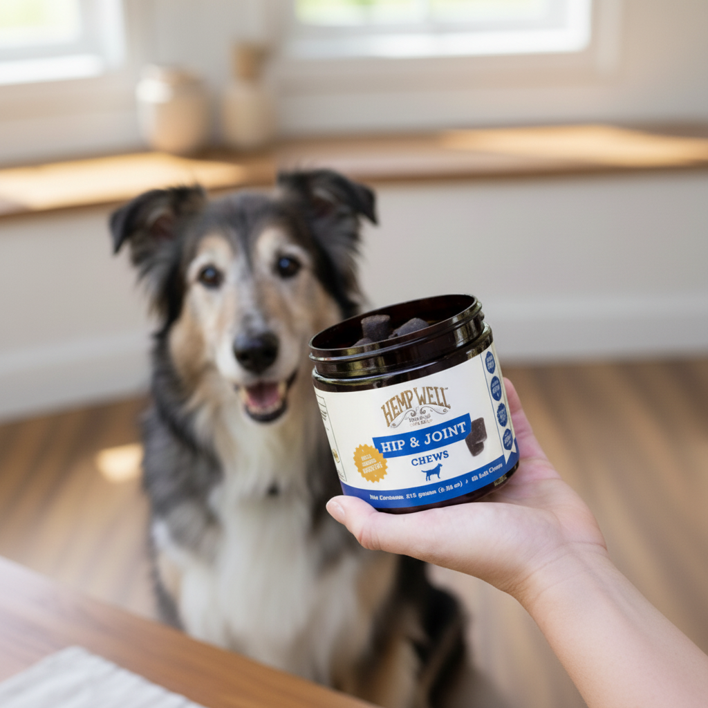 Organic hemp + Glucosamine + MSM + Boswellia equals the support your dog needs to support everyday activities.