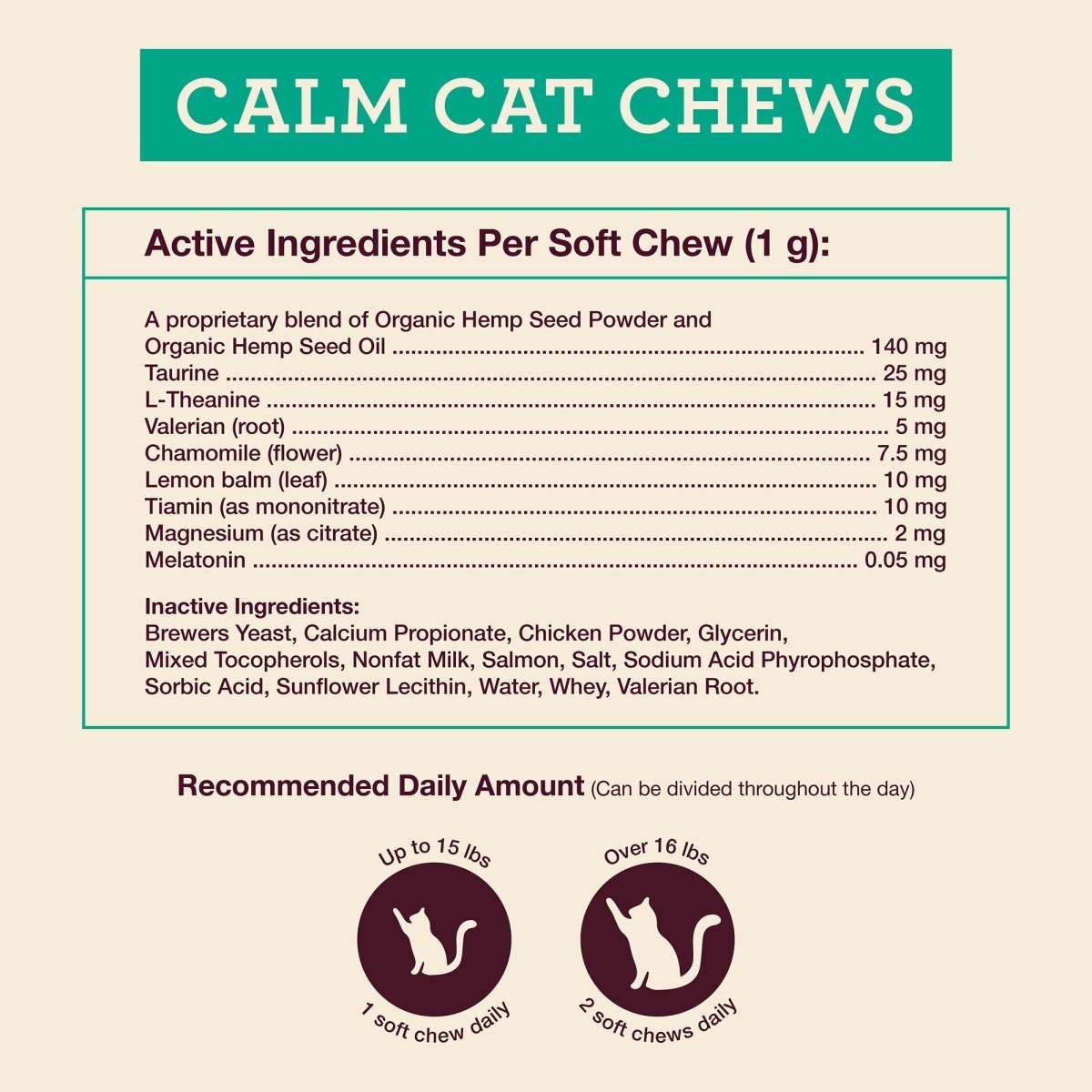 Calm Cat Soft Chews - Organic, USA Grown