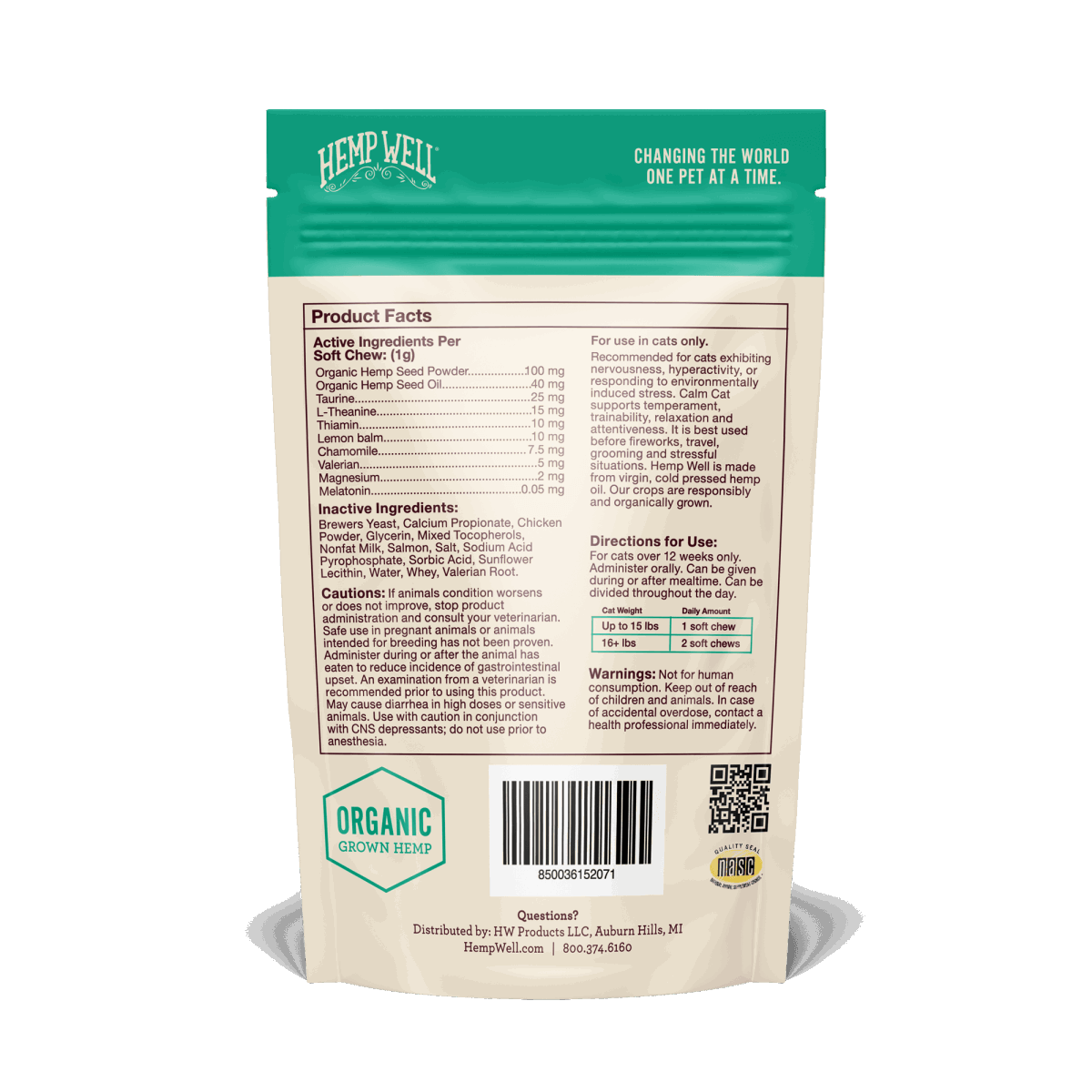 Cat Hairball Soft Chews - Hemp Well calm calming cat tag4 organic over 1,000,000 pets love Hemp Well
