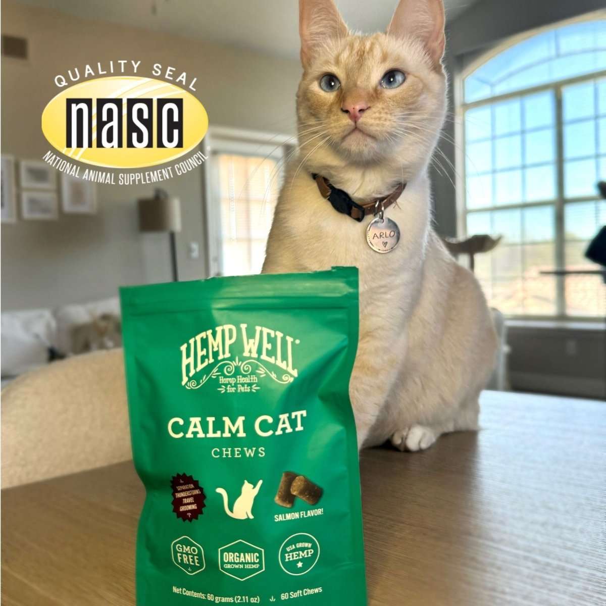 Calm Cat Soft Chews - Organic, USA Grown - Hemp Well calm Calm Pet calming tag4 organic over 1,000,000 pets love Hemp Well