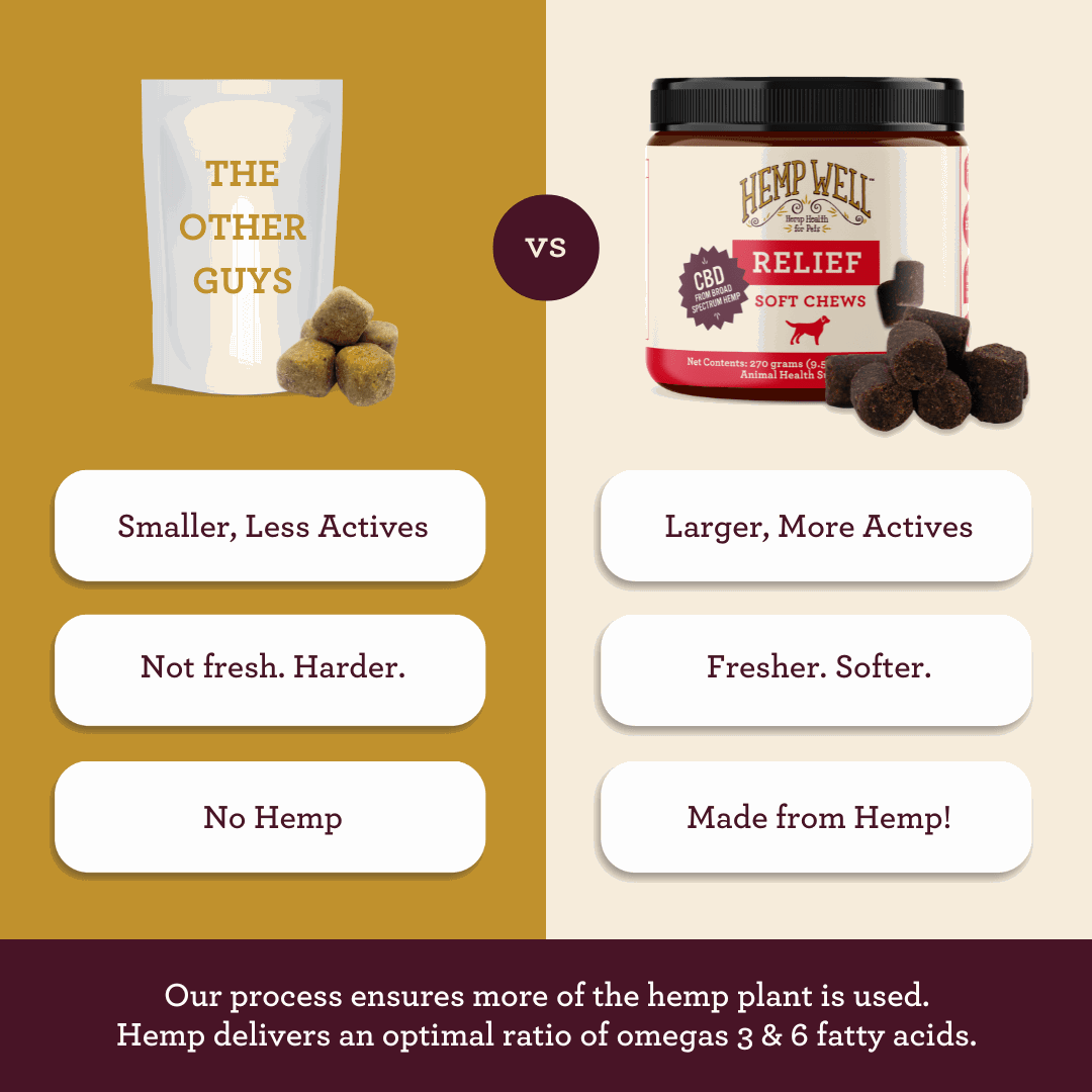 Hemp Well products are crafted to deliver more actives than many competitors, ensuring better value and results. Whether choosing soft chews, oils, or targeted bundles, dog owners rely on our trusted formulations to support comfort, calmness, and long-term health.